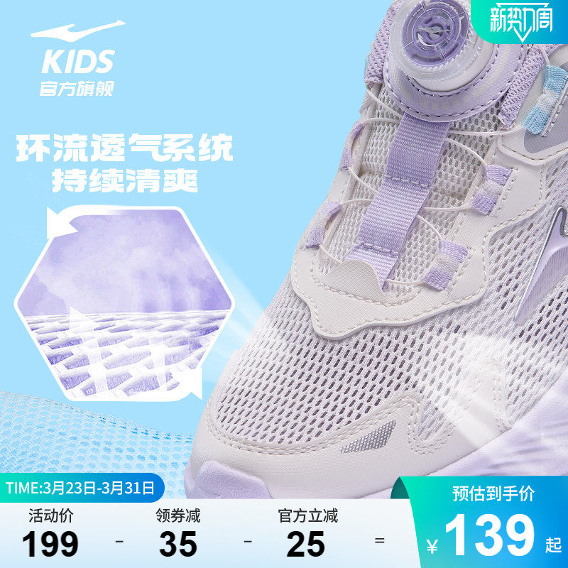 凌跃4|鸿星尔克童鞋女童运动鞋中大童网面透气鞋子旋钮扣跑步鞋