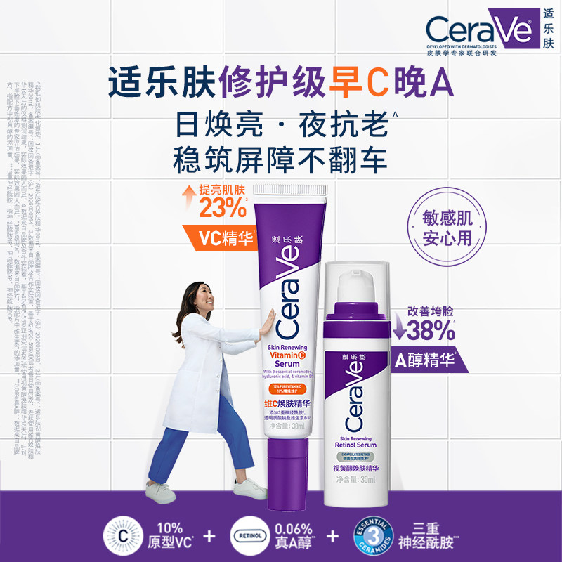 CeraVe适乐肤【早C晚A】精华套组抗皱紧致焕亮抗氧温和修护礼物