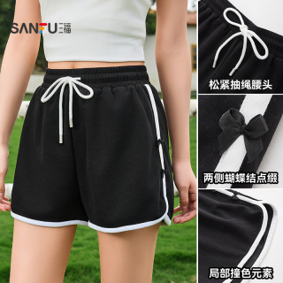 三福短裤女2026新款夏季运动风针织休闲裤小个子局部撞色裤子女装