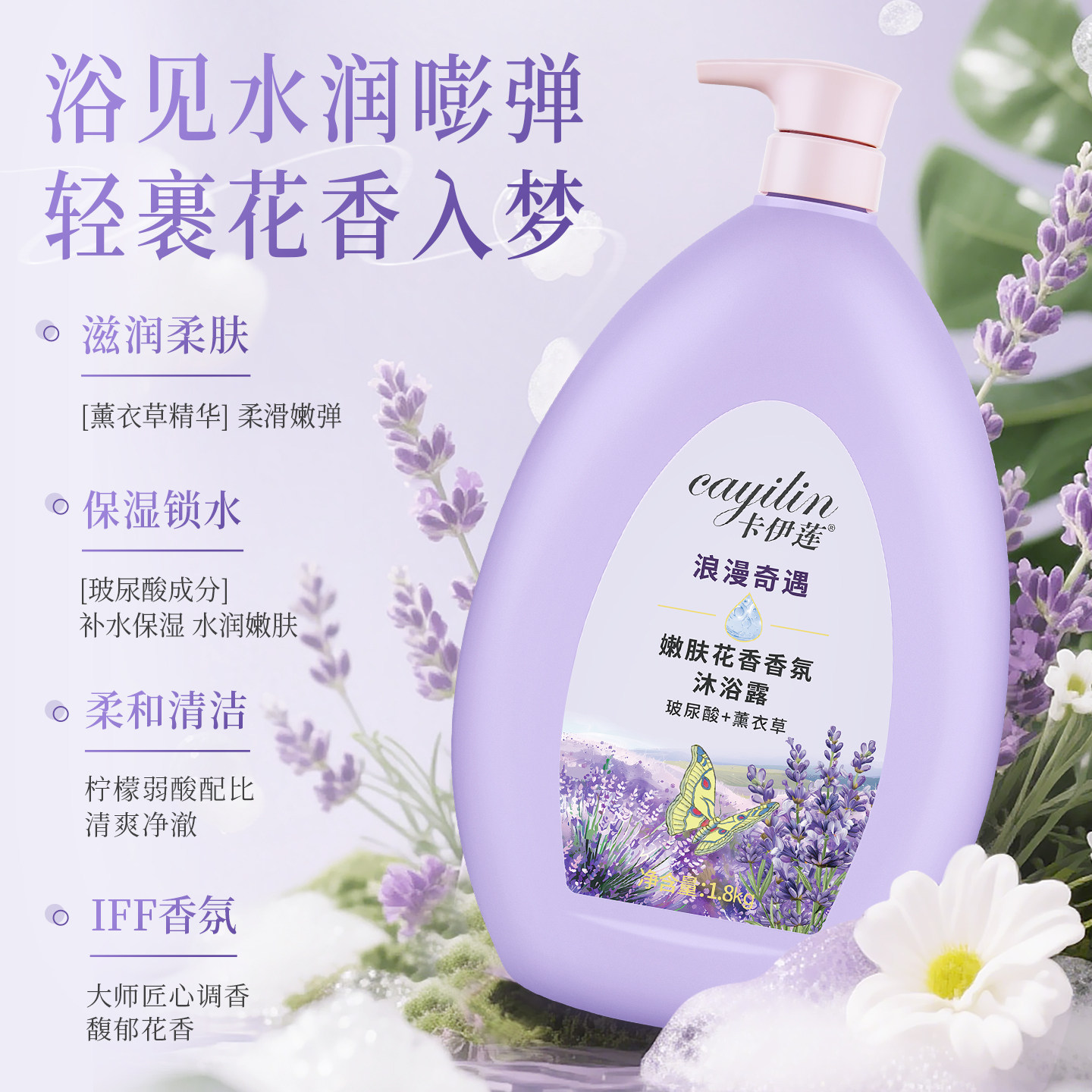 卡伊莲嫩肤花香香氛沐浴露保湿滋润牛奶薰衣草大容量实惠家庭装