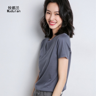 3牧都兰正肩纯棉T恤女韩版打底圆领2025修身显瘦自带腰线纯色上衣