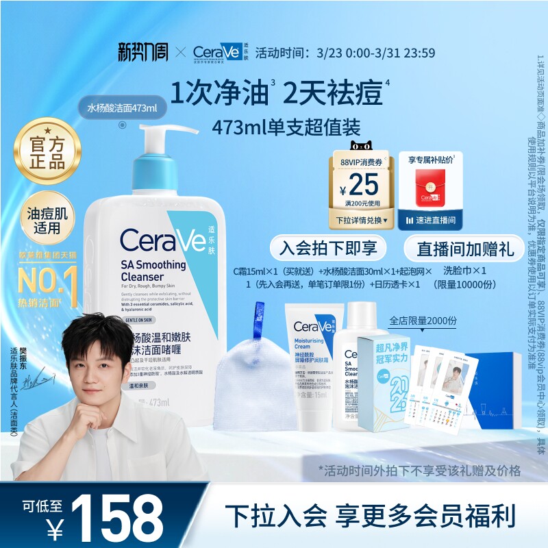 :原价111.48元,现在领取15元优惠券,预估到手96.48元,CeraVe水杨酸氨基酸洁面啫喱控油祛痘;CeraVe水杨酸洗面奶,氨基酸配方温和去油,有效祛痘控油,适合男女使用。官方正品,清爽不紧绷,肌肤更洁净透亮!