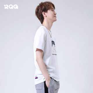 R.Q.G夏季新款男士短袖t恤宽松学生青少年白色上衣纯棉潮流体恤衫