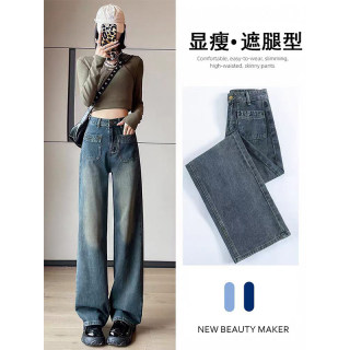 复古高腰牛仔裤网红爆款女2026春季新款宽松显瘦遮肉百搭直筒长裤