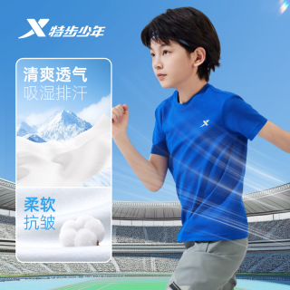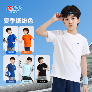 特步童装儿童纯棉短袖T恤男女童运动上衣夏中大童短T运动服打底衫