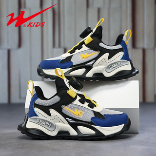 双星男童鞋子春秋新款透气网面中大童纽扣防滑男孩皮面儿童运动鞋