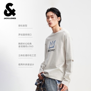 【假两件T恤】杰克琼斯男装春夏新款BSQ联名宽松长袖男士打底衫