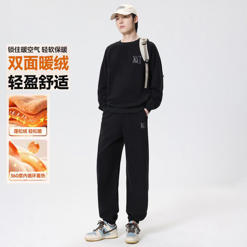 Desso冬季厚款摇粒绒字母刺绣套装男女同款休闲运动居家服两件套