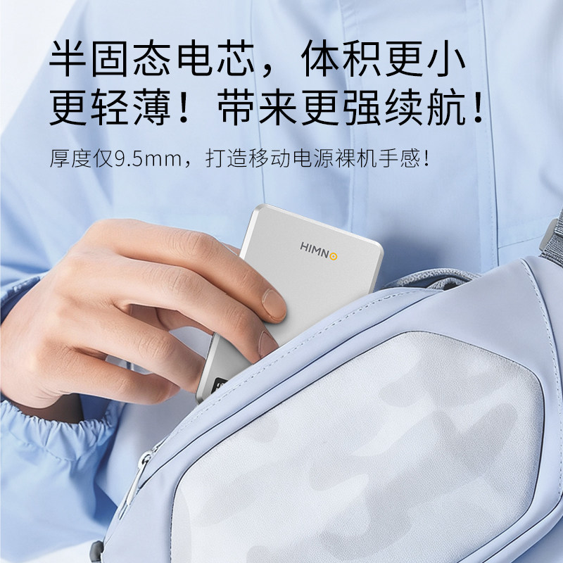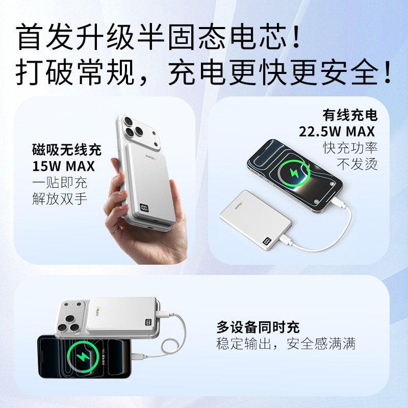 喜美诺磁吸充电宝5000毫安半固态移动电源3C认证可上飞机高铁固态电池22.5W快充数显超薄小巧商务便携