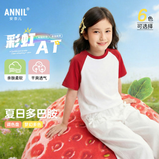 :原价49元,现在领取10元优惠券,预估到手39元,安奈儿童装男女童圆领短袖T恤针织衫;[全尺码同价!]安奈儿,童装男女童圆领短袖T恤针织衫2026夏多巴胺配色宽松亲肤