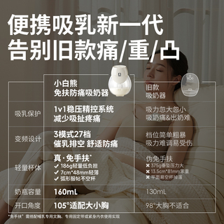 小白熊贝贝吸奶器微震按摩免手扶电动双边静音母乳全自动挤奶便携