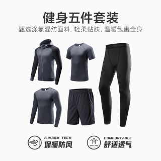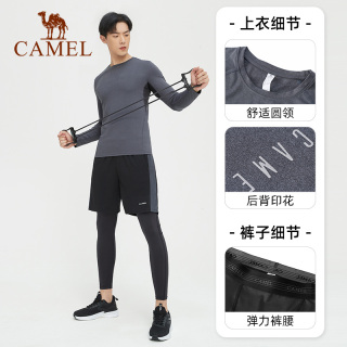 骆驼健身服套装男夏季连帽高弹跑步吸汗透气运动短袖五件套
