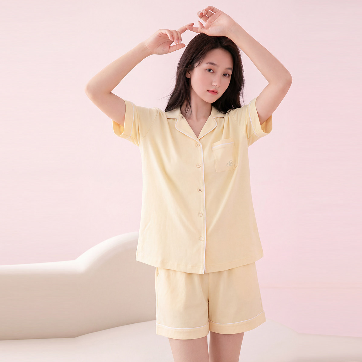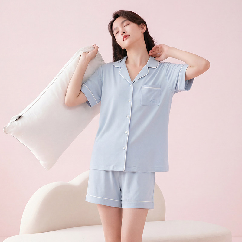芬腾睡衣女100%棉家居服新款夏季短袖大码可外穿舒适透气两件套女