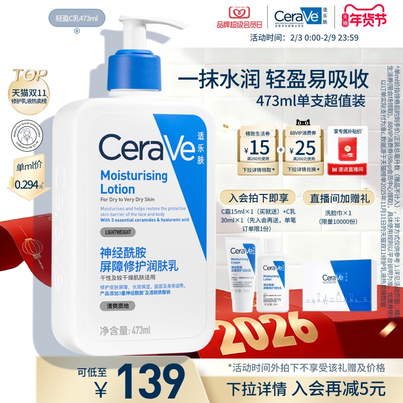 CeraVe适乐肤C乳保湿身体乳液面霜敏感肌张凌赫同款