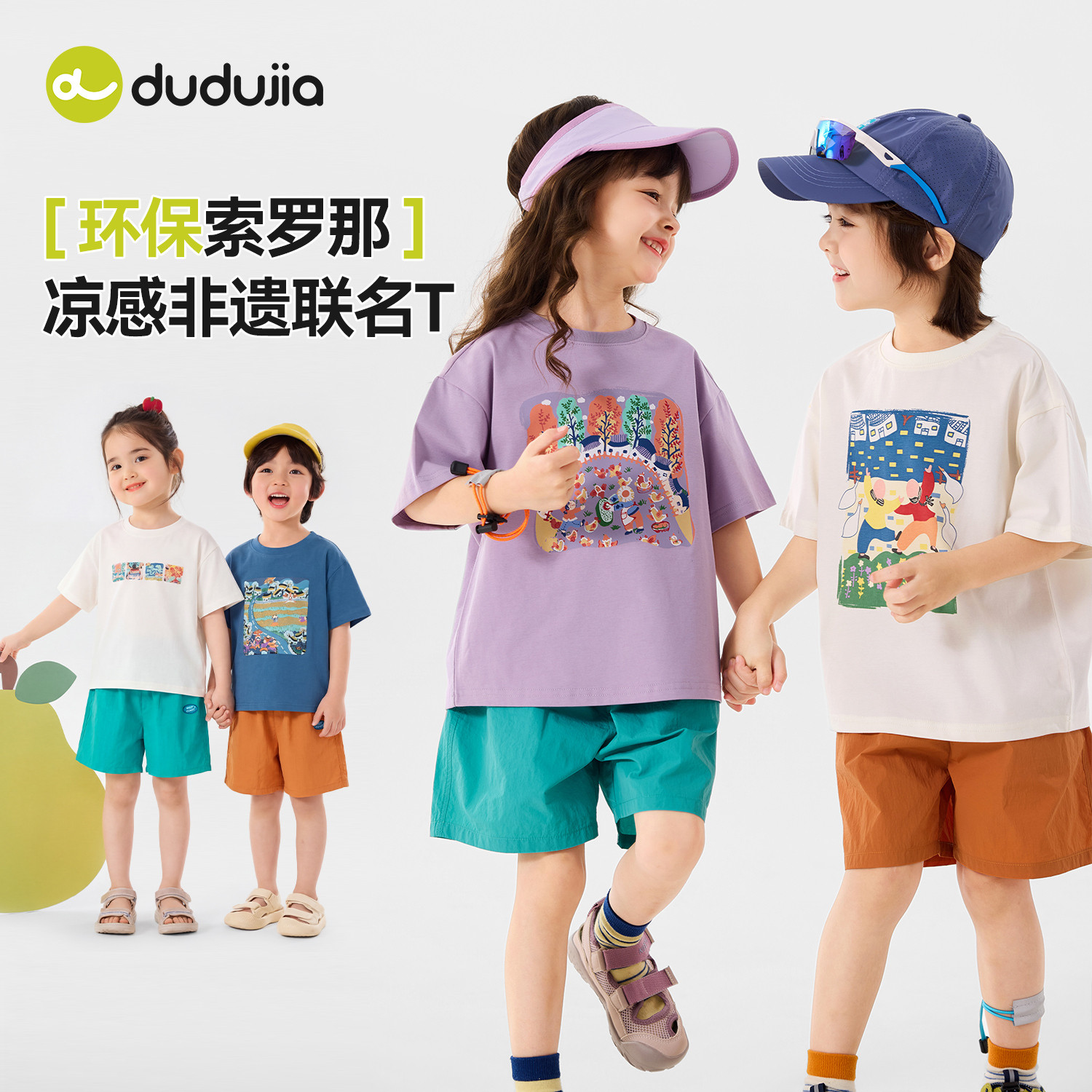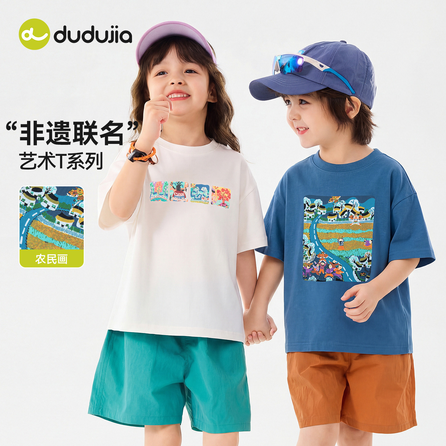 嘟嘟家男童T恤宝宝夏季A类内搭儿童短袖打底衫女童非遗联名童装潮