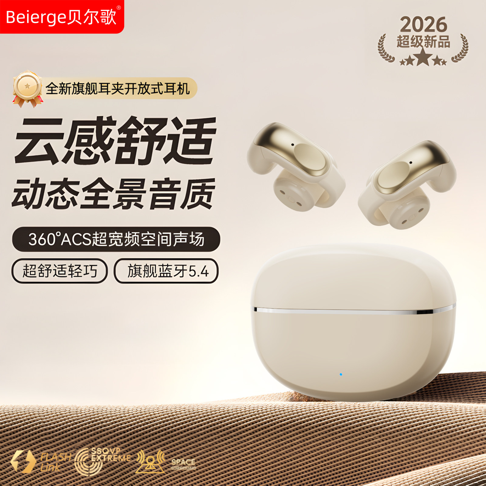 贝尔歌2026新款耳夹式蓝牙耳机无线开放不入耳夹耳专用运动长续航