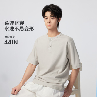 [优可丝]骆驼男装圆领短袖T恤男夏季新款户外通勤打底衫白色透气