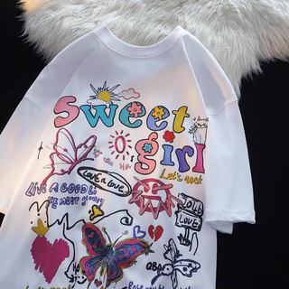 棉棉印象 美式印花复古短袖t恤女宽松大码夏季内搭打底衫棉上衣