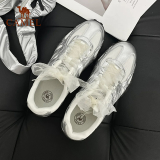 骆驼薄底鞋流光新款运动鞋女鞋防滑百搭休闲板鞋银色复古德训鞋