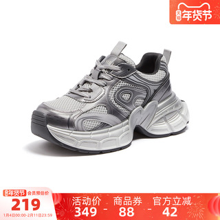 骆驼星宇老爹鞋女鞋2025秋季新款厚底复古银色运动鞋女百搭休闲鞋