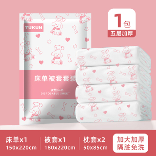 tukun一次性床单被罩枕套酒店隔脏四件套旅行加厚火车卧铺三件套